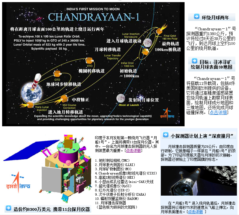 印度多年前提出“登月计划”,共分三个阶段实施。“Chandrayaan—1”号探测器的发射是登月计划第一步。