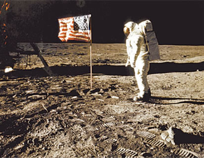 第二阶段 阿波罗领跑太空竞赛 20世纪50年代,人类对月球的探测和研究在美国和苏联的太空竞赛中迈开匆忙的脚步。1957年苏联成功发射第一颗人造卫星。短短两年后,苏联发射了人类第一个空间探测器———“月球1号”。它主要测量了月球和地球磁场、宇宙射线的强度与变化。1959年9月13日,苏联发射的“月球2号”成功实现了在月面的硬着陆,成为了第一个登上月球的人造物体。10月,“月球3号”首次拍到了月球背面的照片。 美国直到1961年才开始发射月球探测器———“徘徊者号”,而直到1964年,“徘徊者7号”才成功在月球上硬着陆,并发回照片。但美国的阿波罗登月计划后发制人,终于在1969年7月20日将两名宇航员成功送上月球,“阿波罗11号”成功降落在静海谷地,全球50亿人在电视机前见证这一历史性时刻。登月第一人阿姆斯特朗“迈出了一小步,但却是人类迈出的一大步。”阿姆斯特朗把登月指令舱命名为“哥伦比亚”号,这正是为了向凡尔纳的《从地球到月球》致敬,因为小说中的登月飞船就叫“哥伦比亚”号。 从1969年到1972年,“阿波罗计划”成功完成了6次登月,将12人送上月球。各次“阿波罗”飞行都对月球表面进行大量活动考察,搜集了月球岩石、土壤等标本,从月球上带回重达440公斤的样品和大量宝贵数据。但短暂的登月热潮也就此突然降温,科学家指责巨额经费大都花在虚荣上,未能换来实际利益,苏联的飞行器探月计划也在1976年结束。