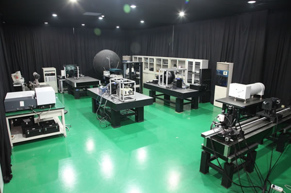 光学系统光谱光度性能测量实验室能够对各类光学系统、光学玻璃、镜片的光谱透过率、绝对反射率、杂散光等进行高精度测量,测试精度可达0.5%以上;拥有岛津UV-3600分光光度计、透过率测量系统、杂散光测量系统(积分球直径Φ600-Φ1600);并且拥有160mm口径的可见光谱段星等模拟器,可实现最低7等恒星的模拟,能够对空间弱光探测相机星等探测能力进行标定和评价。