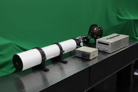 系统组成:950mm平行光管、电控倾斜台、Φ180mm积分球光源加电源、直线位移传感器