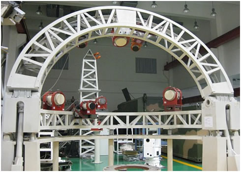 系统组成:系统主要由动靶标(包括:桁架、焦距分别为2m、3m平行光管)、单轴气浮平台、光纤陀螺仪和B码组成。