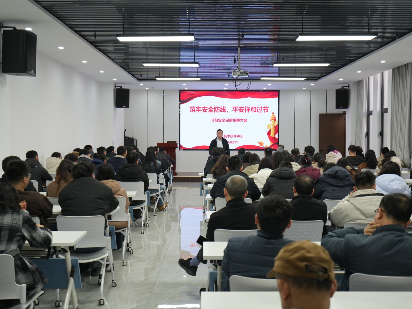 最后,中心主任付兴作总结讲话。对春节前安全风险排查、节日期间值班值守、失泄密风险防范等工作进行再安排、再督促,要求全体人员提高思想认识,压实岗位责任,全面排查整治各类风险隐患,切实把安全、保密、廉洁各项要求落到实处。