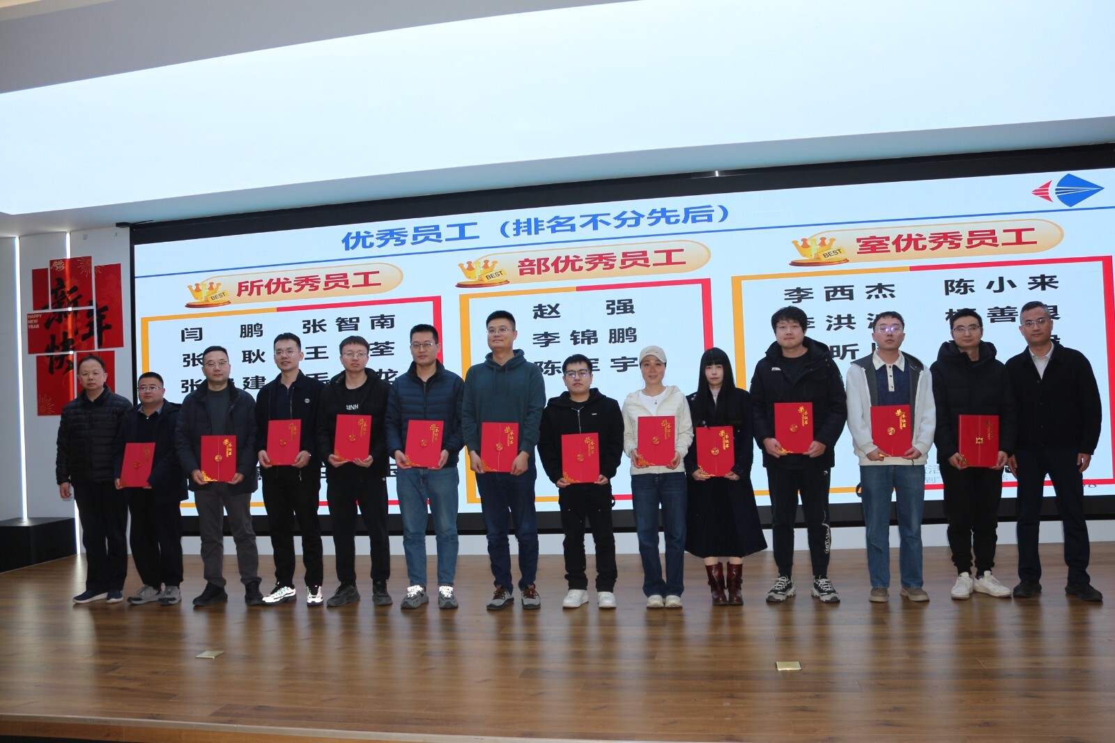 研究室副主任毛祥龙作2025年度工作报告,系统总结研究室在重点项目争取、科研任务推进、关键技术突破等方面取得的主要进展,并对所级、部级及室级优秀员工予以表彰。空天技术部副部长曹剑中、原晓斌为获奖人员颁发荣誉证书。