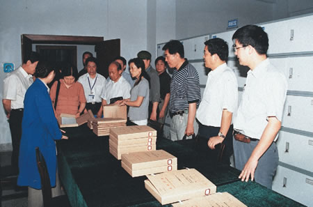 检查团在我所视察期间,观看了所况介绍专题录像片,听取了我所贯彻执行国家《档案法》和《陕西省档案管理条例》,加强档案管理工作的汇报,并现场检查了我所文书档案、科研档案、声像档案等综合档案库房及人事档案库房的管理工作。