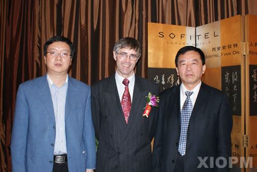 中科院西安分院、陕西省科学院党组副书记陈铁成(右)、西安光机所副所长汶德胜(左)应邀出席表彰大会并与罗曼诺·路普教授合影