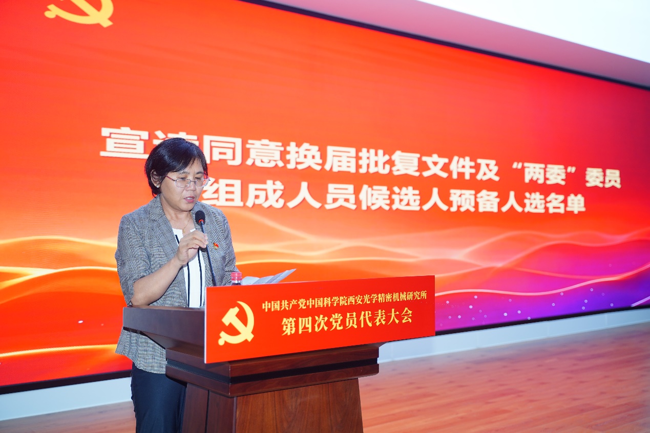 大会预备会议通过了主席团名单、秘书长名单及大会议程。人事教育处处长杨阳代表大会资格考察组作了《中国共产党中国科学院西安光学精密机械研究所第四次党员代表大会代表资格审查报告》。