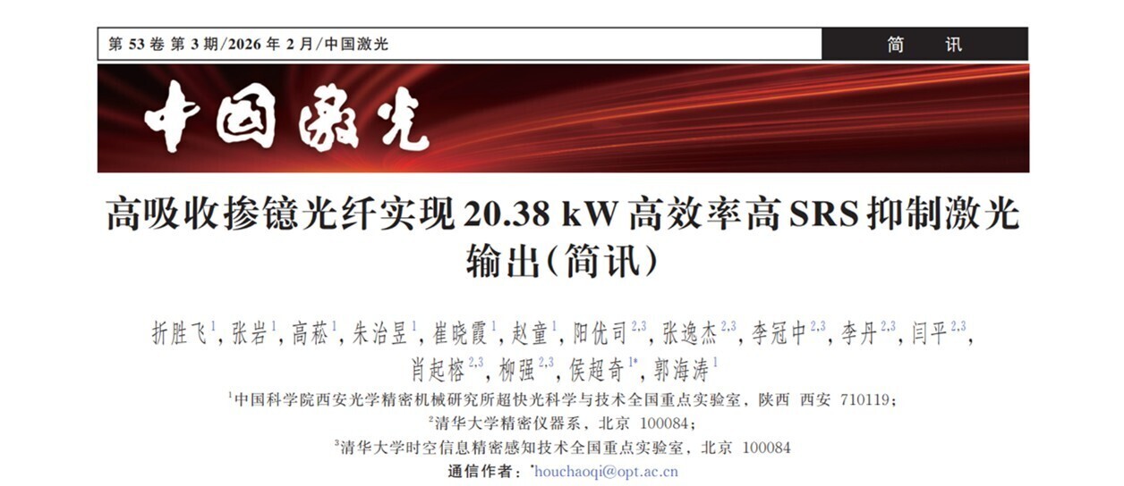近日,中国科学院西安光机所光子功能材料与器件研究室联合清华大学精密仪器系,在高功率掺镱光纤领域取得重要进展,相关成果以简讯形式发表在《中国激光》。论文第一作者为西安光机所折胜飞副研究员,通讯作者为西安光机所侯超奇研究员,西安光机所为第一完成单位和通讯单位。