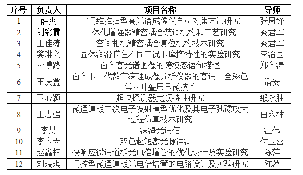 西安光机所将于2023年9月26日上午9:00开展“2022年度大学生创新实践训练计划”结题考核,请以下项目负责人提前做好准备。