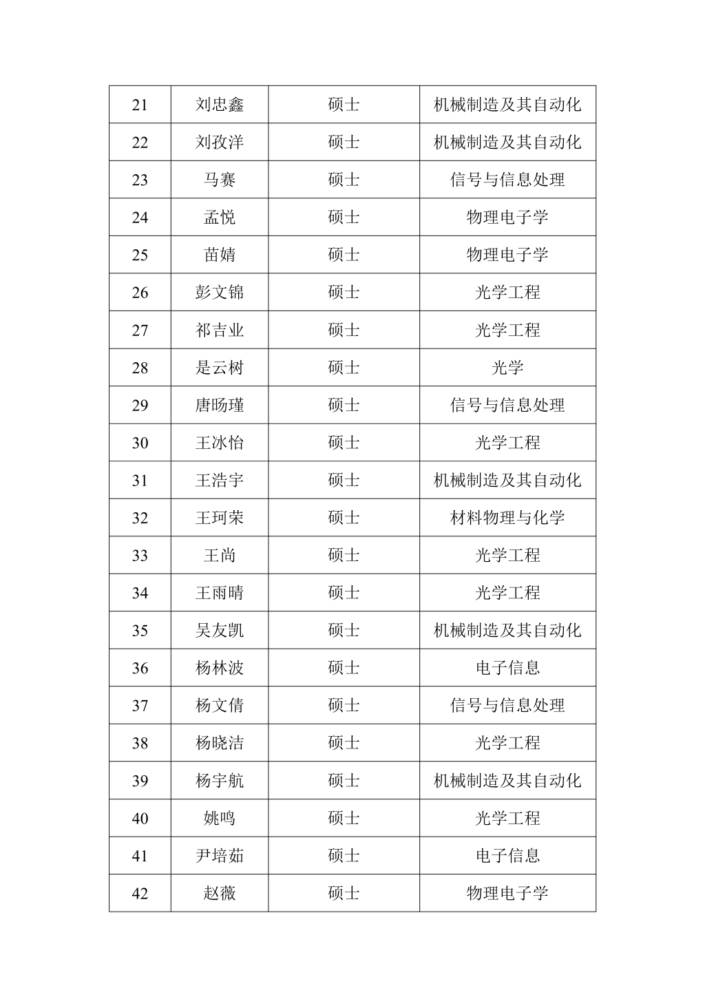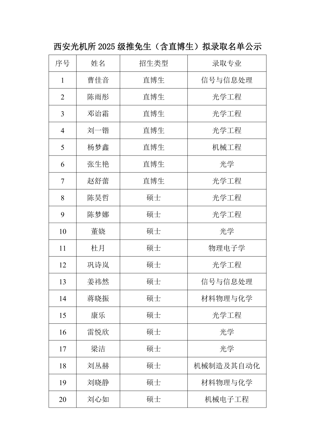 西安光机所2025级推荐免试研究生(含直博生)拟录取名单公示如下: